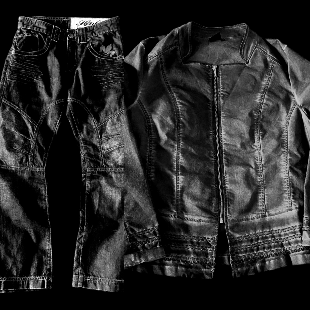 Zestaw łączy spodnie Maralu i marynarko-kurtkę w klimacie lat 70.–90. – oba elementy mają charakterystyczny krój, ale są przemyślane pod współczesne noszenie.