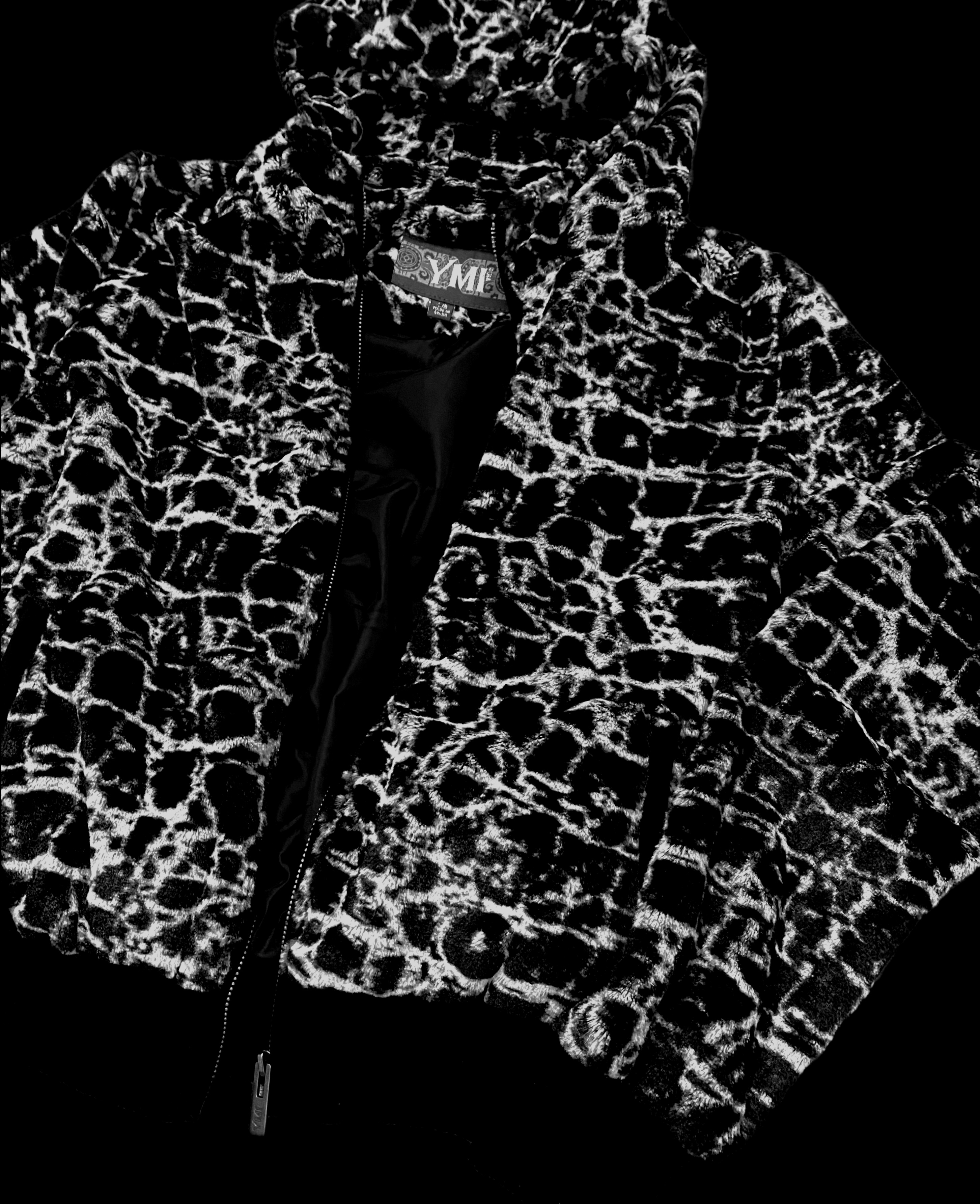 Animal print z połyskiem na gładkim poliestrze – materiał miękki w dotyku, ale zachowuje strukturę, delikatnie odbija światło, ale subtelnie, bez przesady.